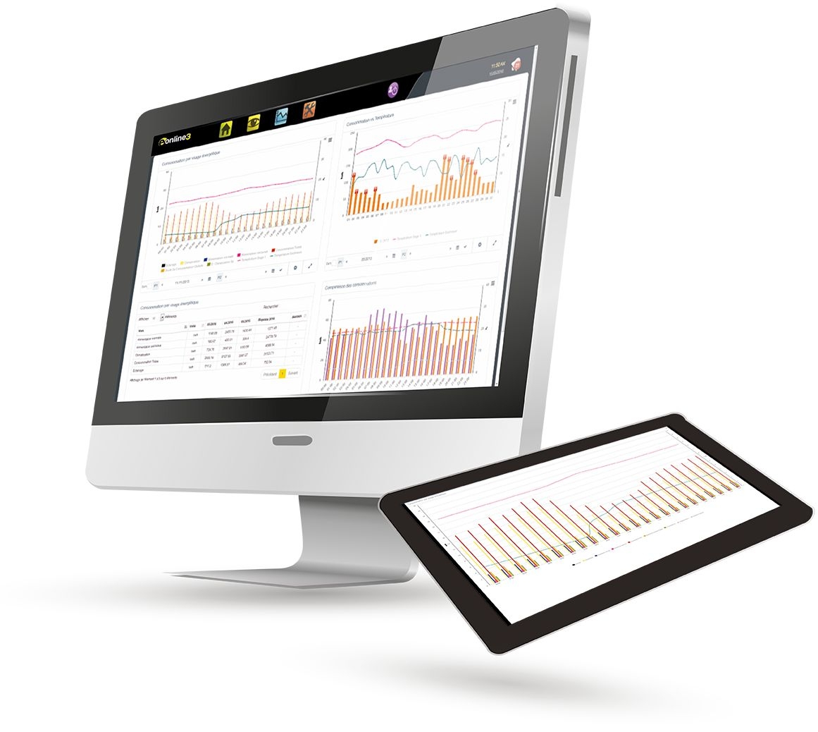 En plus de la possibilité d’ajouter des profils utilisateurs et des points de mesure en fonction des besoins, E.online 3 est un outil complet couvrant l’ensemble des énergies (électricité, eau, gaz, calories), des usages et des procédés. Les fonctionnalités du logiciel vont du simple suivi des consommations jusqu’aux indices de performance énergétique, en passant par la supervision en temps réel de toutes les mesures et comptage, le partage des rapports via la diffusion automatique par mail des analyses, les alertes ciblées en fonction de modèles énergétiques, l’archivage des données sur plus de dix ans d’historique.