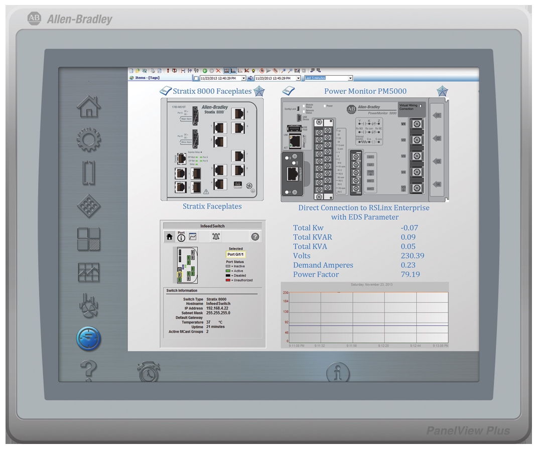 La marque Allen-Bradley de Rockwell Automation, présente le Panel View Plus 7, un terminal graphique destiné aux opérateurs exigeant un affichage en temps réel performant pour le contrôle d’applications de petite ou moyenne taille, basées sur un réseau EtherNet/IP. Cette interface tactile permet la connexion vers un seul contrôleur d’automates et peut gérer jusqu’à 25 écrans et 200 alarmes.